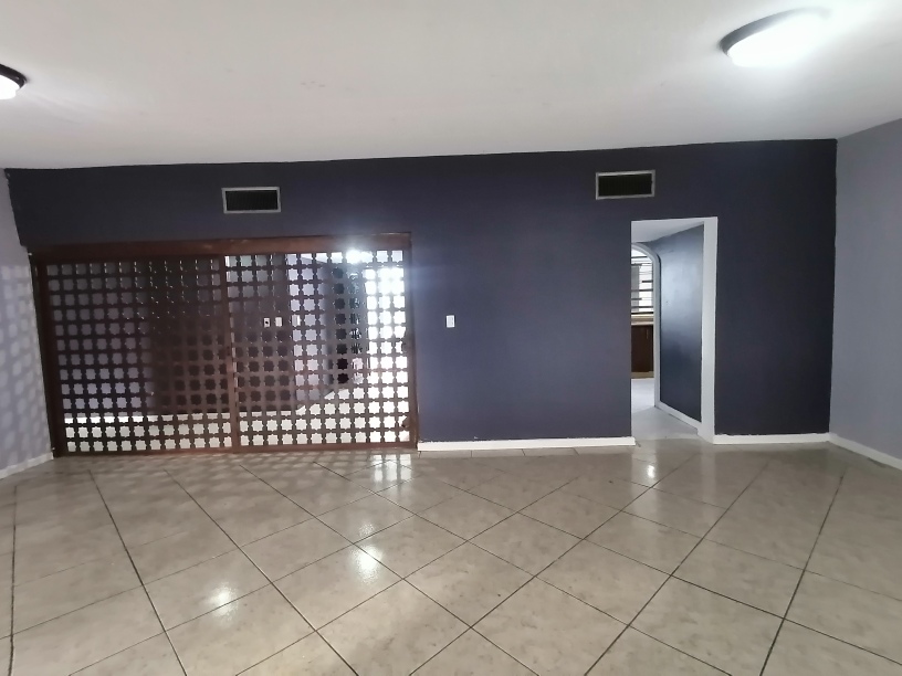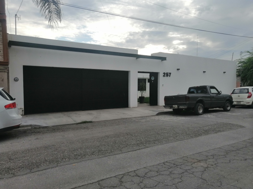Casa muy amplia, una planta, Consta de lo siguiente; Cochera techada 3 autos chicos, Jardin al frente, Pasillo de servicio, Recibidor, Sala, Comedor, Cocina con cocineta, Area de lavado, 4 Recamaras muy amplias, 1 Recamara de servicio, 3 Baños completos, Cuarto de bodega, Patio trasero y jardin muy amplio.