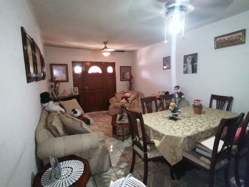 Casa de 2 plantas, en la parte baja consta de; porche a la entrada, cochera techada para 2 autos con porton, Sala, Comedor, Estancia, Cocina integral completa, 1 baño completo y patio trasero grande.